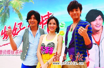 因主演《惡作劇之吻》、《命中注定我愛你》、《惡魔在身邊》等偶像劇而走紅的臺灣人氣偶像鄭元暢、陳喬恩、賀軍翔日前現(xiàn)身廣州出席某飲料代言活動。