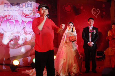 婚宴現(xiàn)場引發(fā)不小騷動的當屬央視主持人畢福劍的出場。當主持人請證婚人畢福劍上臺時,人們紛紛放下酒杯站了起來,努力看清著名主持人。在其他餐廳的客人,通過電視轉(zhuǎn)播看到這位名人,紛紛跑到主場來看。老畢引起的騷動剛平息不久,鞠萍姐姐的出現(xiàn)又讓客人們興奮了一下。主持人稱,老畢是新郎家人請來的,而鞠萍姐姐是新娘家人請來的。鞠萍很親和地客串了一把主持,將一對新人捐贈100萬元建希望小學的事跡講給大家聽。至于兩位央視主持人的勞務費,有知情人士稱“不低于20萬”。其實,這已不是畢福劍第一次走穴了,此前沈陽一名富商結婚,不但動用38輛悍馬車迎親,造成交通堵塞,還邀請央視“名嘴”畢福劍擔任司儀,據(jù)傳老畢只“象征性”地拿了點勞務費,不過媒體打聽出這勞務費高達20萬元。此外,北京有媒體報道稱畢福劍帶領《星光大道》的人氣選手亮相某星級酒店舉行的婚禮現(xiàn)場,人氣選手還登臺表演助興。昨日,記者就此致電畢福劍,但其手機始終無人接聽。
