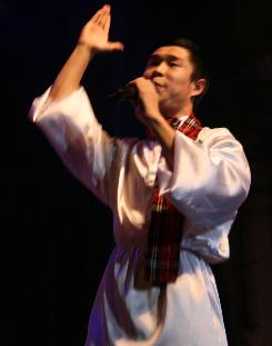 接著出場的程野干脆將褲子當成衣服穿,外加卡通吊帶褲,玩兩把器樂,搖擺肥胖的身軀肉麻地與搭檔跳起印度舞。程野在表演的過程中;經(jīng)典兒歌串燒和經(jīng)典曲目以程野的個人風格演唱整個體育館里掀起了高潮。最為新鮮的是小鵬飛的客串讓程野有點招架不住。
