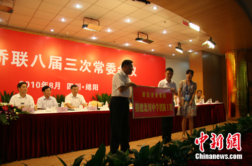 中新網(wǎng)綿陽(yáng)8月17日電 (南若然)中國(guó)僑聯(lián)八屆三次常委會(huì)17日在四川綿陽(yáng)召開(kāi),會(huì)上舉行了愛(ài)心企業(yè)和單位向援建北川中學(xué)工程捐贈(zèng)儀式。
