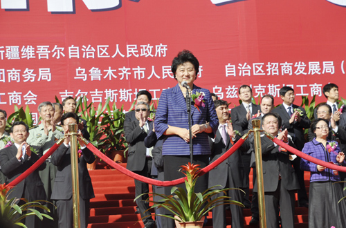 開幕式上中共中央政治局委員,國務(wù)委員劉延?xùn)|宣布,烏洽會(huì)將從明年開始升格為中國亞歐博覽會(huì),并且宣布本屆烏洽會(huì)開幕。