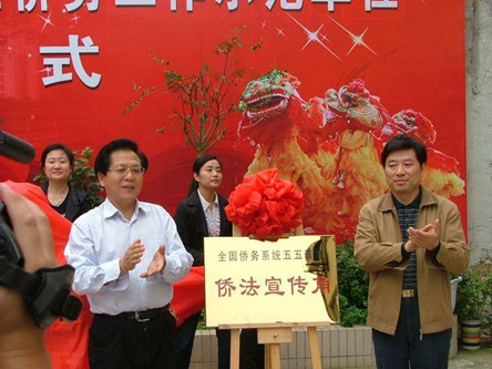 中新網(wǎng)10月11日電 據(jù)無錫市僑辦消息,近日,“全國(guó)僑法宣傳角”暨“江蘇省社區(qū)僑務(wù)工作示范單位”揭牌儀式在江陰市澄江街道壽山路社區(qū)隆重舉行,江蘇省僑辦僑政處處長(zhǎng)盧勝平,無錫市僑辦副主任張偉達(dá),江陰市政協(xié)副主席、統(tǒng)戰(zhàn)部部長(zhǎng)曹恩華,無錫市僑辦僑政處、江陰市僑辦、澄江街道負(fù)責(zé)人及壽山路社區(qū)的歸僑僑眷參加了授牌儀式。