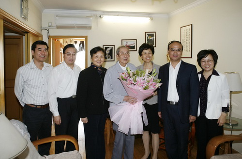 上海市委統(tǒng)戰(zhàn)部副部長丁志堅(jiān)、市慈善基金會(huì)副理事長兼秘書長金閔珠、市僑聯(lián)副主席張癸和市僑辦副主任陳文佳看望了菲律賓歸僑、中科院上海植物生理生態(tài)研究所研究員施教耐院士和美國歸僑、中科院上海有機(jī)化學(xué)研究所研究員蔣錫夔院士,感謝他們?cè)诟髯缘目蒲蓄I(lǐng)域?yàn)樯鐣?huì)做出的杰出貢獻(xiàn),是僑界的驕傲。