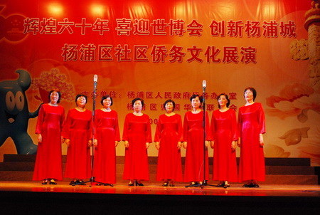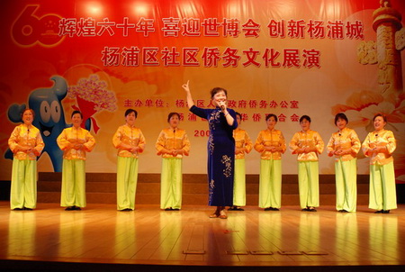 中新網(wǎng)10月26日電 10月21日下午,“輝煌六十年喜迎世博會(huì)創(chuàng)新楊浦城”——上海市楊浦區(qū)社區(qū)僑務(wù)文化展演活動(dòng)在楊浦區(qū)文化館舉行。上海市僑辦副主任陳文佳,副區(qū)長(zhǎng)馬杰富,區(qū)委統(tǒng)戰(zhàn)部副部長(zhǎng)、區(qū)政府僑辦主任胡耀良,區(qū)僑聯(lián)主席曹國(guó)強(qiáng)等出席活動(dòng)。社區(qū)歸僑僑眷及(僑界人士)代表近500人參加活動(dòng)。