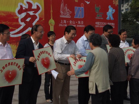 上海市僑辦主任崔明華、副主任陳文佳,金山區(qū)委常委、統(tǒng)戰(zhàn)部長劉其龍,朱涇鎮(zhèn)黨委書記過維義、朱涇鎮(zhèn)鎮(zhèn)長王寶元到活動(dòng)現(xiàn)場為該區(qū)8名困難歸僑僑眷頒發(fā)“上海僑界醫(yī)療幫困卡”。