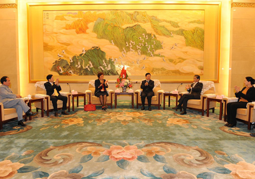 全國(guó)政協(xié)副主席兼秘書(shū)長(zhǎng)錢(qián)運(yùn)錄10月29日在京會(huì)見(jiàn)海外列席僑胞回國(guó)參觀考察團(tuán)。