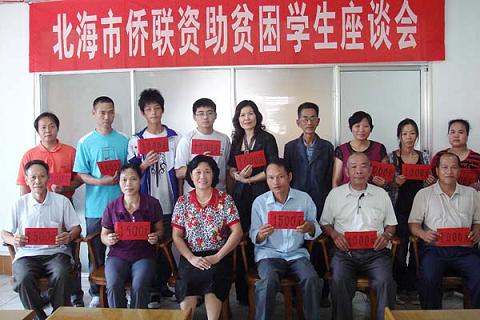 中新網(wǎng)11月2日電 10月24日上午,廣西自治區(qū)北海市僑聯(lián)召開今年的第三次資助貧困學(xué)生座談會,為官澤嬋、張遠(yuǎn)寧、廖丹丹3名貧困大學(xué)生和許程程等10名貧困中學(xué)生,分別資助每人每學(xué)年1500元和1000元,當(dāng)天共計發(fā)放由廣西僑聯(lián)華僑愛心基金會海內(nèi)外華人華僑、企業(yè)家和愛心人士捐助的助學(xué)金14500元。