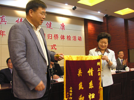 中新網(wǎng)11月11日電 據(jù)上海市僑聯(lián)消息,11月6日下午,上海市僑聯(lián)會(huì)同市慈善基金會(huì)等單位在盧灣區(qū)舉行“真情送溫暖,體檢助健康——為本市早期老歸僑免費(fèi)體檢活動(dòng)啟動(dòng)儀式”。中國(guó)僑聯(lián)副主席、市政協(xié)副主席、上海市僑聯(lián)主席吳幼英,市慈善基金會(huì)副理事長(zhǎng)兼秘書(shū)長(zhǎng)金閩珠出席并講話。吳幼英向捐助了30萬(wàn)元支持此次體檢活動(dòng)的永業(yè)集團(tuán)董事長(zhǎng)錢(qián)軍贈(zèng)送錦旗,指出:這是為僑獻(xiàn)愛(ài)心的崇高善舉,充分體現(xiàn)了老僑工作、新僑工作緊密聯(lián)系、持續(xù)發(fā)展的局面。