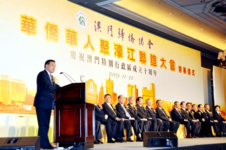 中新網(wǎng)11月25日電 據(jù)中國(guó)僑聯(lián)網(wǎng)站消息,11月23日至24日,由澳門歸僑總會(huì)主辦的“2009華僑華人聚濠江聯(lián)誼大會(huì)”在澳門舉行。中國(guó)僑聯(lián)主席林軍,國(guó)務(wù)院僑辦副主任許又聲以及來自世界56個(gè)國(guó)家和地區(qū)的華僑華人代表以及內(nèi)地僑界嘉賓共1000多人應(yīng)邀出席。澳門特別行政區(qū)行政長(zhǎng)官何厚鏵到會(huì)講話,中央人民政府駐澳門聯(lián)絡(luò)辦副主任徐澤、外交部駐澳門特派員盧樹民等到會(huì)祝賀。
