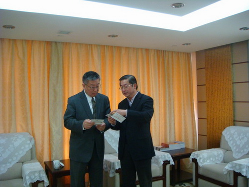 老朋友相見(jiàn),格外高興。胡思源向崔明華介紹了紐約州立大學(xué)在08年8月支助150名大學(xué)生赴美學(xué)習(xí)的情況,以及此次帶領(lǐng)紐約州立大學(xué)校長(zhǎng)老師和200位美國(guó)學(xué)生赴四川地震災(zāi)區(qū)進(jìn)行學(xué)習(xí)交流等情況。