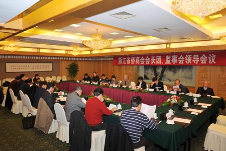 中新網(wǎng)1月29日電 據(jù)浙江僑聯(lián)網(wǎng)消息,2010年1月24日晚,浙江省僑商會(huì)在浙江世貿(mào)君瀾大飯店舉行會(huì)長團(tuán)、監(jiān)事會(huì)領(lǐng)導(dǎo)會(huì)議。