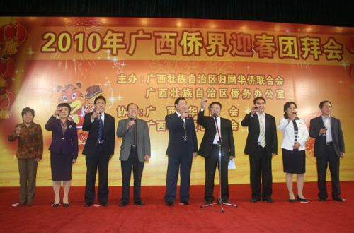 中新網(wǎng)2月20日電 據(jù)廣西僑聯(lián)消息,日前,2010年廣西僑界迎春團(tuán)拜會(huì)在南寧市明園飯店隆重召開。本次團(tuán)拜會(huì)由廣西自治區(qū)僑聯(lián)、自治區(qū)僑辦主辦,廣西華商會(huì)、廣西華僑愛心基金會(huì)協(xié)辦。