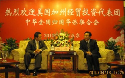中新網(wǎng)4月14日電 據(jù)中國僑聯(lián)網(wǎng)站消息,4月13日,中國僑聯(lián)副主席王永樂在華僑大廈會見了以美國加州圣蓋博市市長黃裕民為團長的加州經(jīng)貿(mào)及地產(chǎn)投資代表團一行。