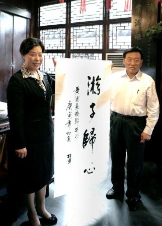 隨后,林軍即興揮毫潑墨為豫園題詞“雅韻如詩”;為黃浦區(qū)僑聯(lián)題詞“游子歸心”。