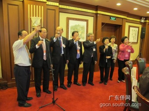 中新網(wǎng)5月10日電 據(jù)廣東僑網(wǎng)消息,5月7日晚,廣東省僑辦主任吳銳成、副主任黎靜在北京京西賓館設(shè)宴歡迎參加第五屆世界華僑華人社團聯(lián)誼大會的部分僑領(lǐng)。