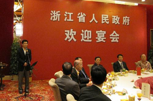 中新網(wǎng)5月18日電 據(jù)浙江僑網(wǎng)消息,5月13日晚,浙江省政府在花中城友誼廳舉行宴會,熱烈歡迎參加第五屆世界華僑華人社團(tuán)聯(lián)誼大會的80余位海外華僑華人社團(tuán)負(fù)責(zé)人。浙江省副省長龔正,省政府副秘書長夏海偉,國僑辦文化司副司長周虹出席宴會。
