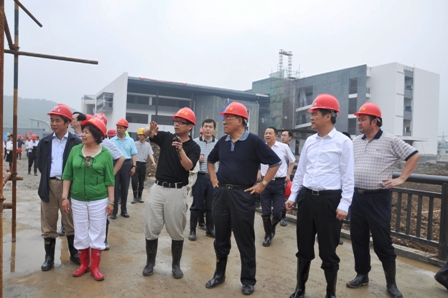 在四川省僑聯(lián)黨組書記周敏謙,中共綿陽市委副書記、市長曾萬明,中鐵二局集團公司黨委書記鄧元發(fā)等人的陪同下,林軍、喬衛(wèi)一行冒著雨后的泥濘深入工地,詳細察看了教學樓、學生宿舍、食堂、實驗樓和行政樓等建筑的施工情況。