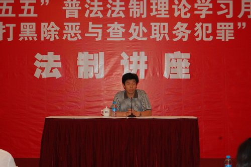 中新網(wǎng)6月24日 據(jù)重慶市外僑辦消息,6月18日上午,重慶市外僑辦舉行了“打黑除惡與查處職務(wù)犯罪”專題講座。此次講座是根據(jù)重慶市委宣傳部、市委法制建設(shè)領(lǐng)導(dǎo)小組辦公室、市司法局有關(guān)“五五”普法工作的要求和《市外僑辦2010年法制建設(shè)工作安排計(jì)劃》,落實(shí)外僑辦法制理論學(xué)習(xí)月具體措施的專項(xiàng)活動之一。