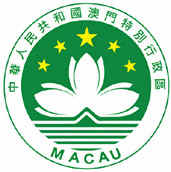 澳門特別行政區(qū)的區(qū)徵,中間是五星、蓮花、大橋、海水,周圍寫有「中華人民共和國澳門特別行政區(qū)」和葡文「澳門」。其圖案的含義與區(qū)旗相同。
