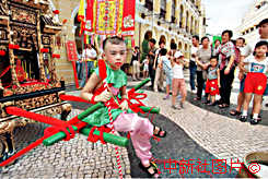 澳門三十日舉行哪吒出游,以紀(jì)念哪吒太子誕,這是中斷三十三年的哪吒出游活動首度恢復(fù)。據(jù)主辦者介紹,此舉是為澳門回歸年祈福平安吉祥。