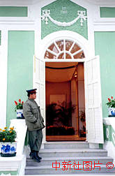 澳門(mén)保安人員在葡國(guó)建筑特色的博物館前執(zhí)勤